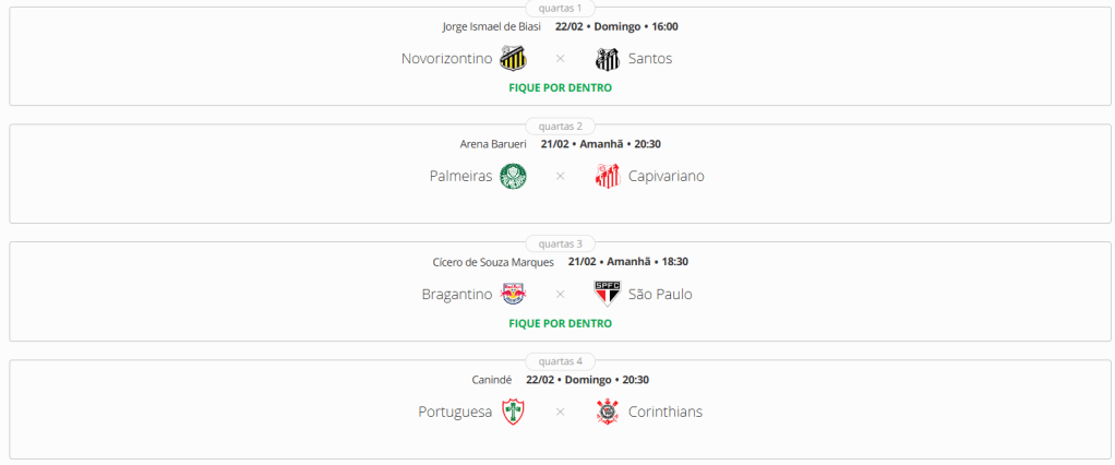 O adversário do time será o Santos, que tem como principal artilheiro Gabriel, que também marcou quatro gols no campeonato até agora. No outro jogo desta fase, Flaco Lopez, que também marcou quatro gols, tentará ajudar o Palmeiras a passar de fase contra o Capivariano, que conta com a dupla Rodolfo e Baianinho (com dois cada no campeonato) para surpreender o alviverde.